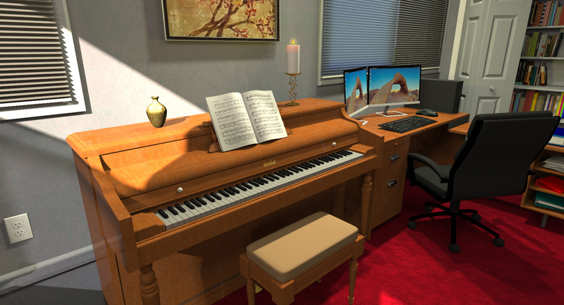 Everything you see below was rendered from 3D models using software such as Sketchup, Raylectron, Thea Render, and Skatter. We can also provide virtual walkthrough capability using Oculus Rift. With prior arrangements, typical projects take 1-2 days from measurements to first image delivery. In many cases we can provide close if not exact matches to your desired surfaces, materials, and furniture. We can work from rough sketches, photographs, and architectural plans.
